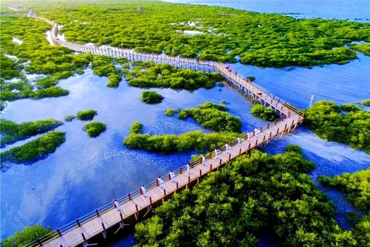 - 紅樹林生態區:綿延6公里的生態海岸線,漲潮時呈現“海上森林”奇觀,退潮時灘涂可見招潮蟹、彈涂魚等生物,適合觀鳥、攝影。
