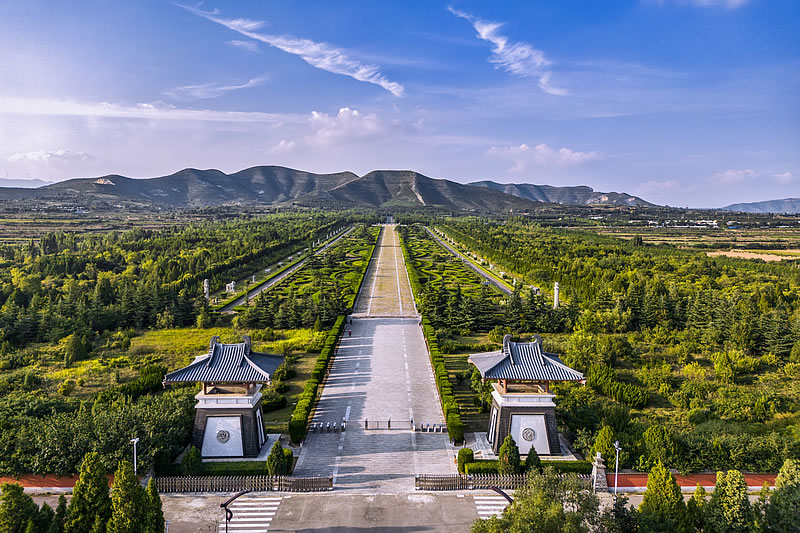 - 地理位置:陜西省渭南市蒲城縣西北豐山,唐睿宗李旦陵墓,全國重點文物保護單位、國家AAAA級景區,以“石雕藝術寶庫”著稱,面積852萬平方米,神道寬110米、長625米,石刻群包括華表、翼馬、鴕鳥、翁仲等,氣勢恢宏。