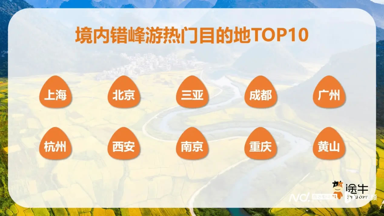 境內錯峰游仍是多數游客的首選,途牛平臺上境內出游人次占比超過70%。熱門目的地包括上海、北京、三亞、成都、廣州、杭州、西安、南京、重慶、黃山等地。