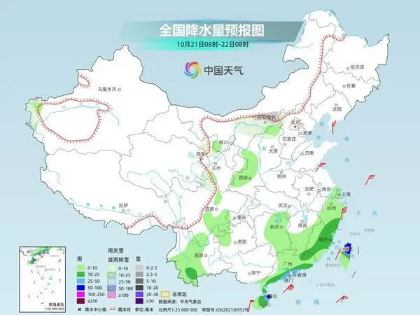 明天,新疆西部、青海西部和東南部、甘肅西南部、陜西北部、山西北部、川西高原北部等地部分地區有小雪或雨夾雪。陜西中南部、河南西部、福建北部和東南部、四川東部和南部、云南東北部和西部、廣東東南部、臺灣島等地部分地區有中到大雨,其中,臺灣島東部和北部等地部分地區有暴雨或大暴雨。