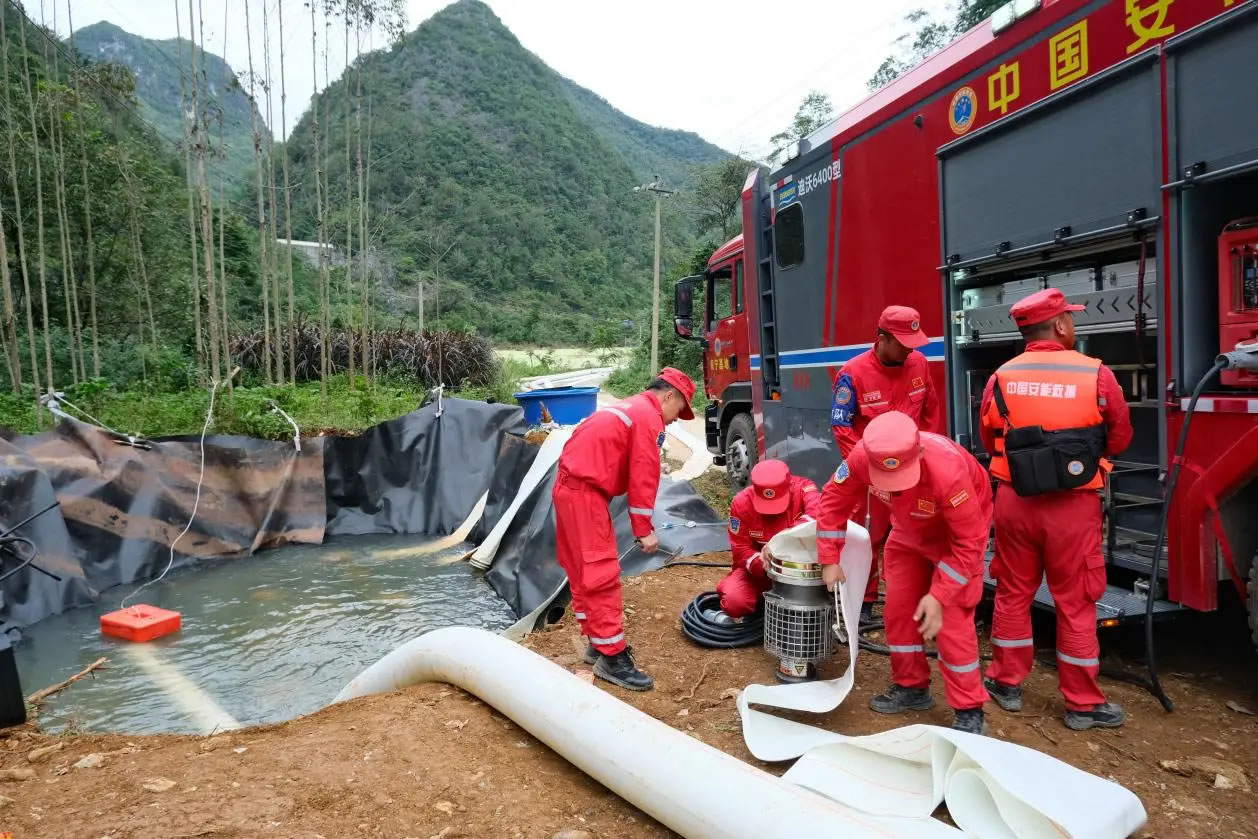 針對剩余的43個內(nèi)澇點,救援隊伍正爭分奪秒開展作業(yè)。剩余點位多為深積水、高風險區(qū)域,廣西壯族自治區(qū)應急管理廳調(diào)配南寧、河池、來賓等地40余名消防員、8臺排澇車輛進駐靖西新甲鄉(xiāng)等重點區(qū)域,為排澇工作提供持續(xù)支持。