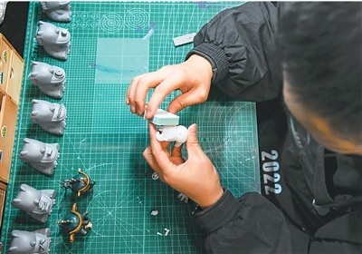 一名文創產品策劃運營師在打磨產品模型。