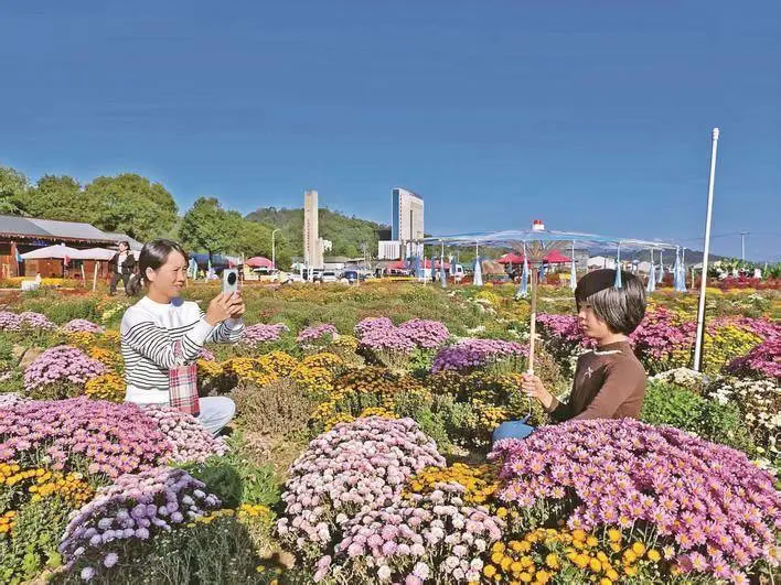 初冬暖陽下,沙縣區中國菊花種質資源保存中心南方分中心基地內繁花似錦。30多個菊花品種次第綻放,切花菊、地被菊、食用菊等繽紛鋪展,10余畝菊田進入最佳觀賞期,吸引眾多市民前來賞菊。