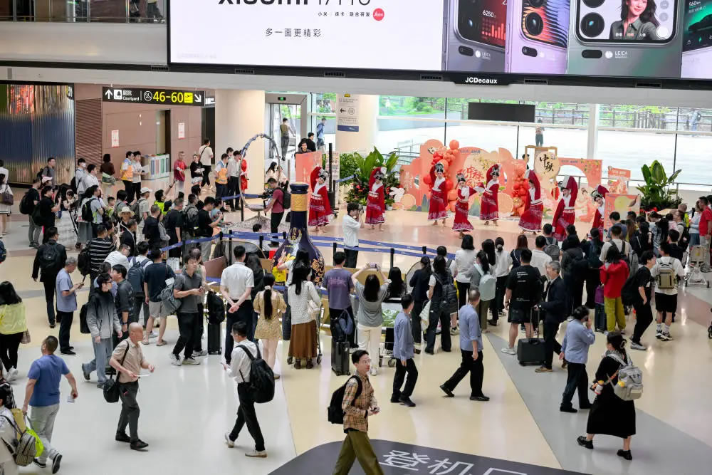 據(jù)介紹,圍繞營造濃厚節(jié)日氛圍,成都雙流、成都天府兩場組織了“國慶76周年”童聲合唱快閃、“高效赴商途慢品小城韻”聯(lián)合營銷、“山河錦繡·筆賦同欣”“禮樂賀國慶漢服迎中秋”等一系列主題文化活動。通過節(jié)目展演、互動游戲等形式增強旅客參與感與節(jié)日儀式感,并結(jié)合國慶元素與成都地標、機場吉祥物進行氛圍布置,充分展現(xiàn)了機場的服務溫度與文化內(nèi)涵。(成都日報錦觀新聞記者 楊富 供圖 四川機場集團)