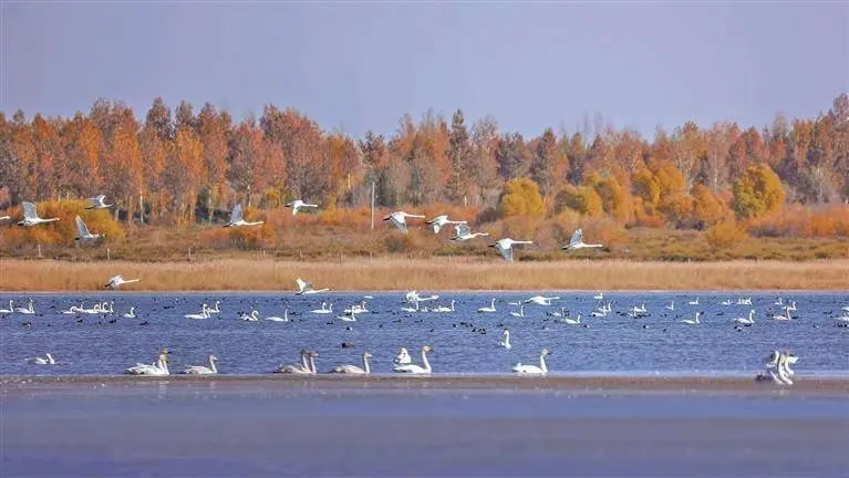 黨大朋介紹,隨著生態環境持續改善,這里已成為候鳥遷徙途中的重要補給站和棲息地。“這里目前已記錄到的鳥類超過150種,包括灰鶴、大天鵝、白鷺等國家重點保護鳥類。隨著遷徙高峰即將到來,會有更多候鳥陸續抵達。”黨大朋說。
