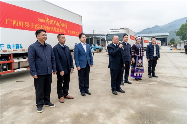 活動現場,當地政府主要領導及企業代表、果農代表共同見證首批“廣西好果子”啟程。西林沙糖桔皮薄肉嫩、清甜化渣,富川臍橙色澤金黃、汁多味濃,容縣沙田柚清香爽口、營養豐富,三款國家地理標志產品不僅是廣西農業的“金名片”,更承載著壯鄉人民對東北老鐵的深情厚誼。